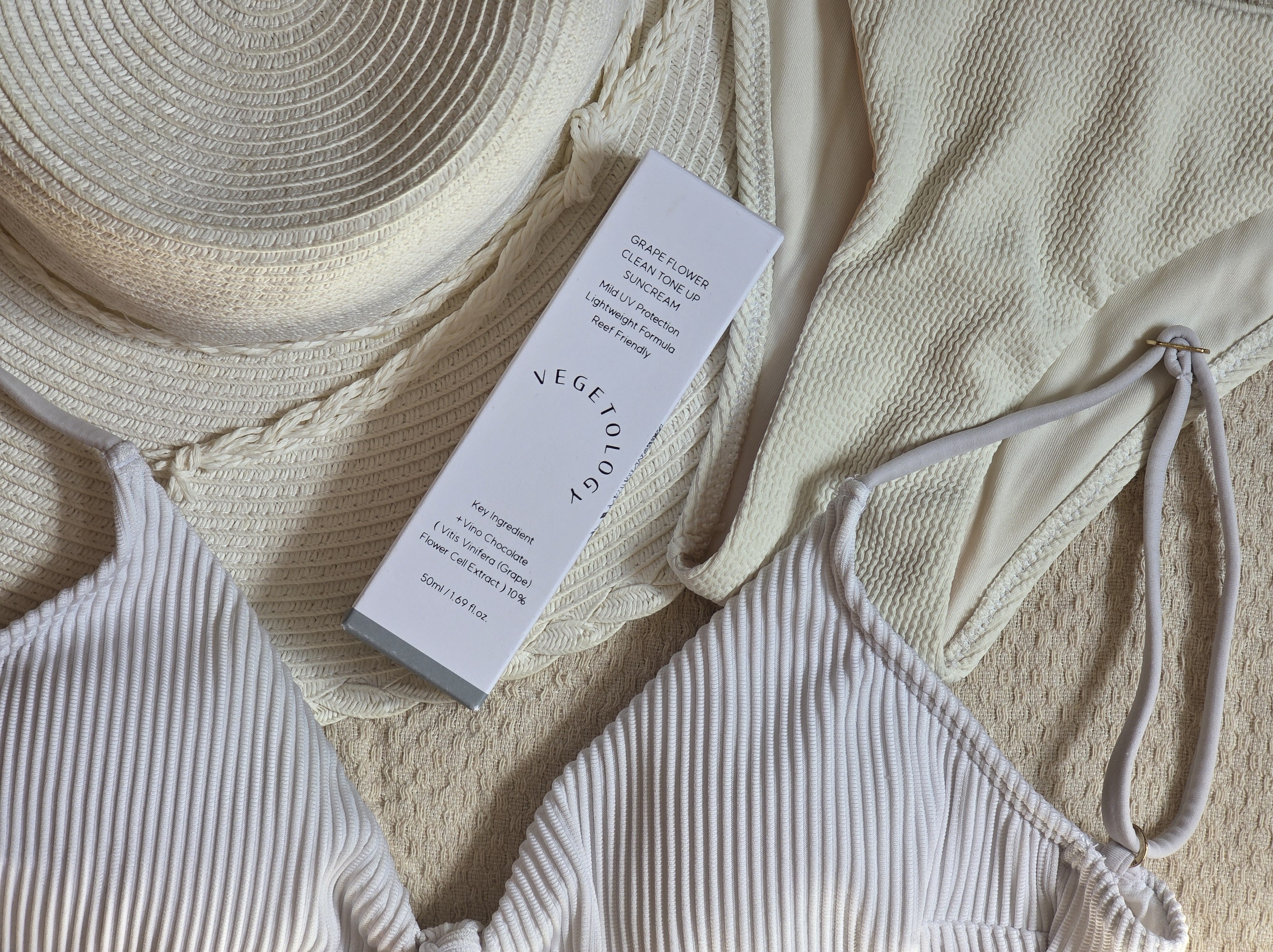 J’ai craqué pour la crème solaire Grape Clean Tone Up Suncream pour 12 euros : protection PA++++ (la plus haute contre les UVA), sans odeur, sans traces blanches, hydratante et respectueuse des fonds marins. À tester sur le long terme, mais mes premières impressions sont très positives !